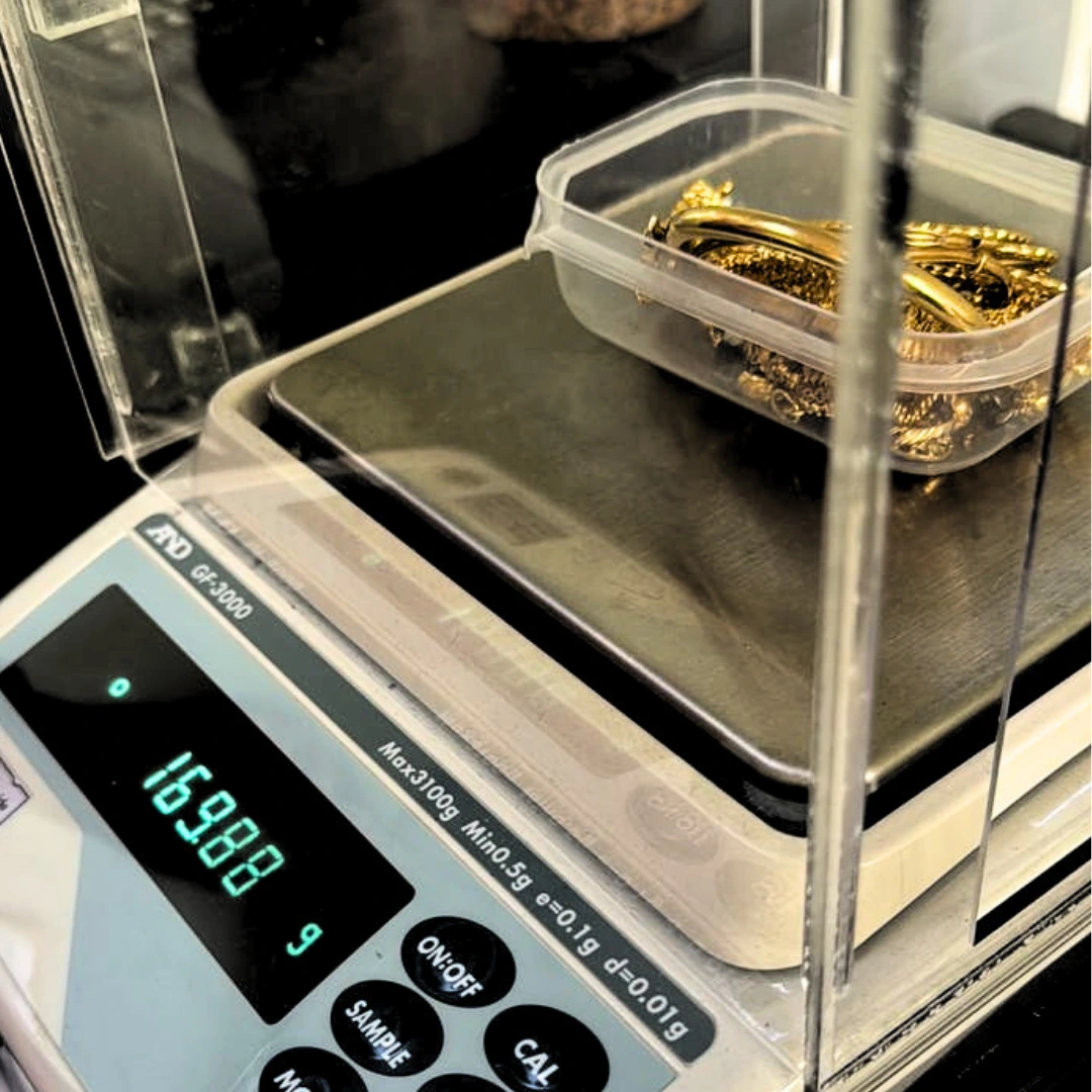 Kami uji dan timbang emas anda di depan anda dengan penuh ketelusan.