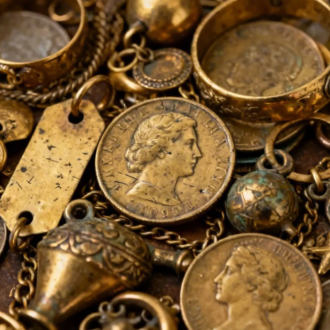 Untuk emas lama dan terpakai, rupa luaran biasanya kurang penting berbanding kandungan emas yang boleh diukur.